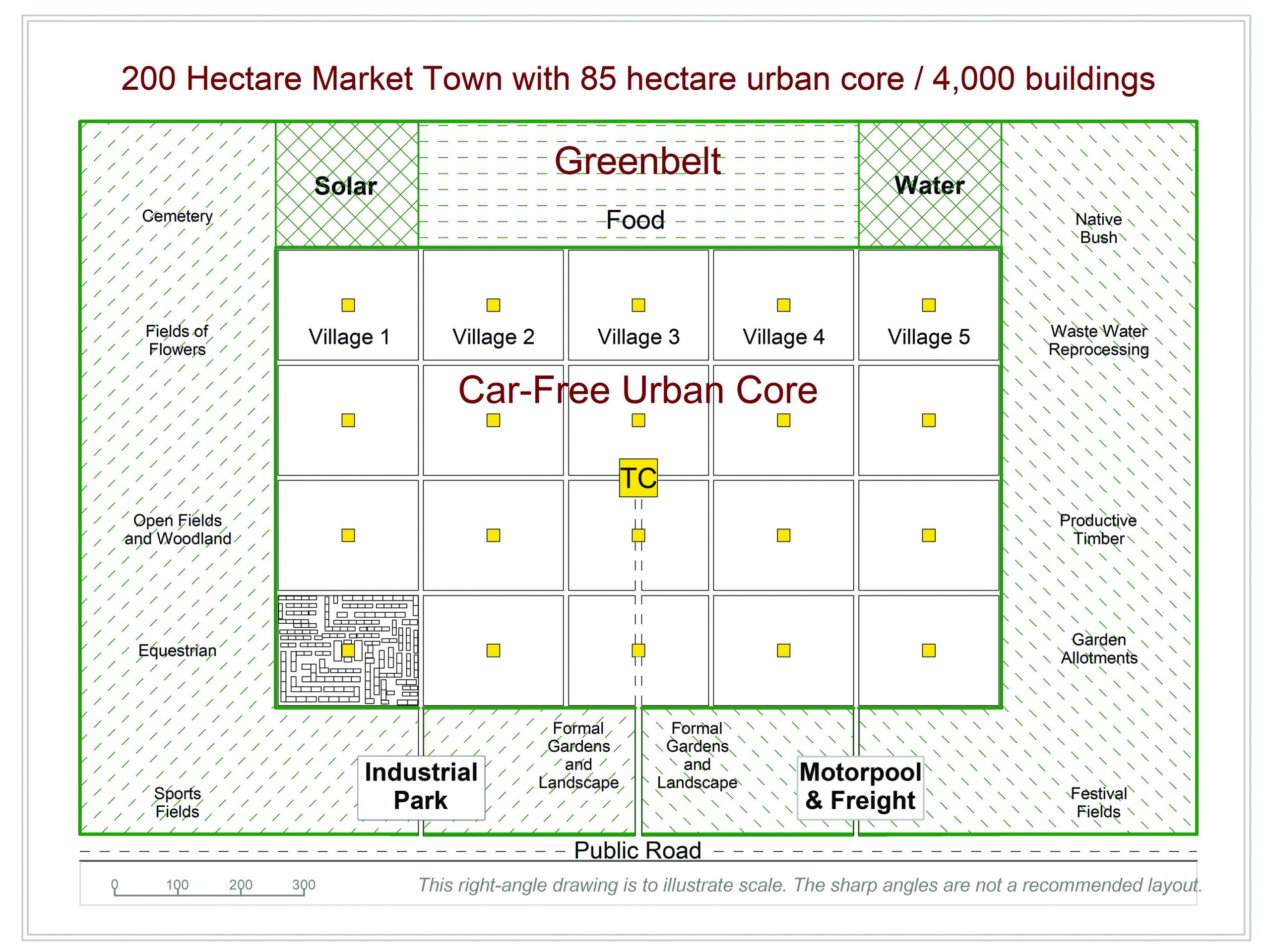 - 200 hectare, greenfield site beyond suburban-sprawl ring